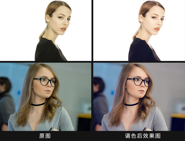 经过上述四个步骤之后,我们的人像肤色调整已经完成了。来看看对比效果吧!