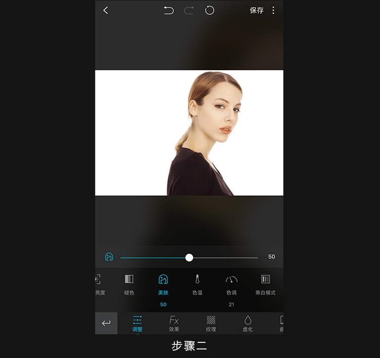 步骤二:使用“美肤”工具,给人物磨皮,提高皮肤通透度。